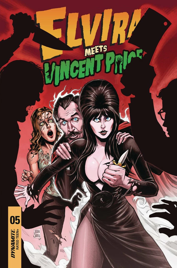 A famous “scream queen” actress is missing, and Elvira and Vincent Price join forces again to find her… even if it means literally breaking the fourth wall, and entering the world of a slasher movie. Can the Mistress of the Dark save the Final Girl before a sadistic director traps her forever in a digital nightmare? Meta-thrills, chills and bad puns from writer David Avallone (Bettie Page, Drawing Blood) and Juan Samu! And the mistress of the dark has never looked better under this busty bevy of covers: Acosta! Samu! Marques/Bone and a photo of the lady herself!