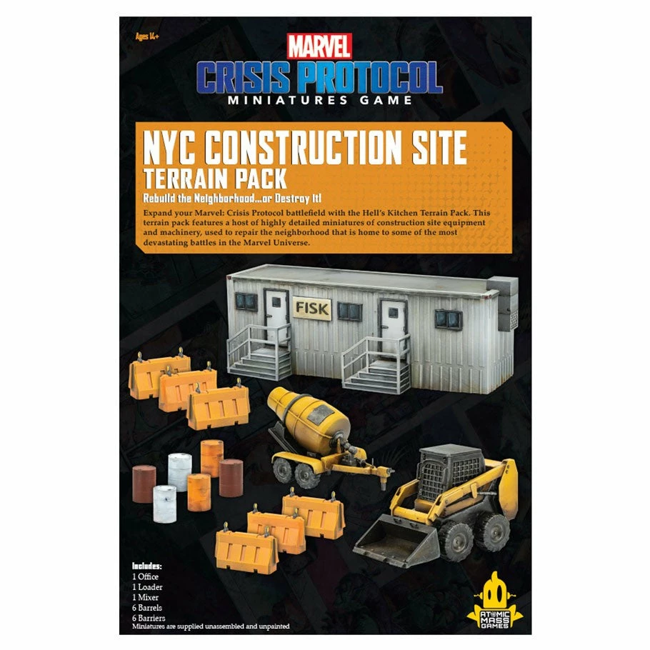 Expands the Marvel: Crisis Protocol battlefield with the Hell’s Kitchen Terrain Pack. This terrain pack features a host of highly detailed miniatures of construction site equipment and machinery— the very kind used to repair the neighborhood that has been home to some of the most devastating battles in the Marvel Universe.