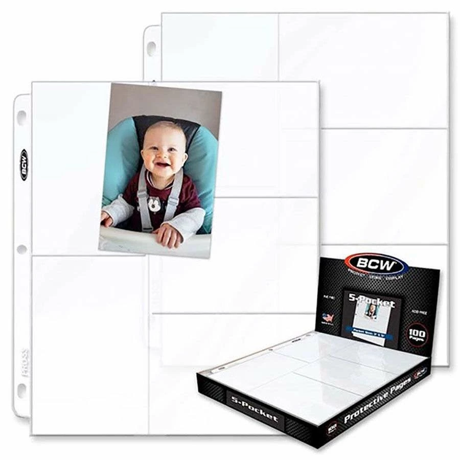 The BCW Pro 5-Pocket pages is an acid free archival quality product that is perfect for storing photographs or postcards up to 3-½ X 5-¼. It is made with a combination of portraint and landscape pockets. This product is made from high-clarity polypropylene and features side-loading pockets with strong welds. BCW Pro 5-Pocket pages fit all standard 3-ring binders and albums. Use the 5 pocket page to protect, store, and display your valuable photos and postcards.