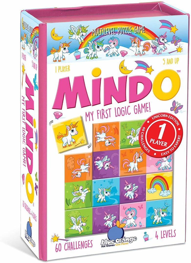 The Mindo Collection consists of 4 clever puzzles; can you collect and master them all? Play solo, or combine them and race your friends. No matter which version you choose the rules are the same: turn and flip the double-sided tiles until you have recreated the color pattern on the challenge card. They only fit one way into a 3×3 or 4×4 grid, so think and plan carefully. 60 different challenge cards and 4 levels of difficulty ensure hours of brain teasing fun!