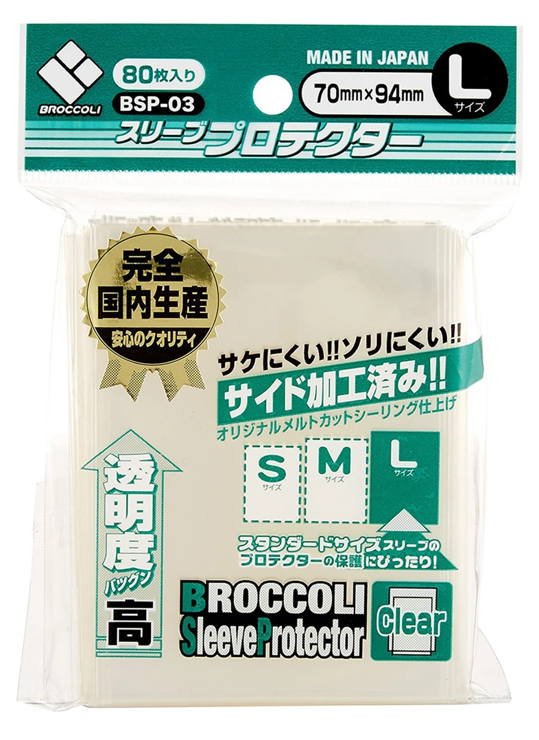 This is a Unique Over Sleeve Clear size L. Dress up your servants with this stylized Broccoli Over Sleeves, and protect your collectible character sleeves