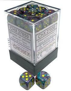 36 pcs dice set by Chessex. The dices contain 12mm six-sided dice (12mm is significantly smaller than the standard 16mm dice).