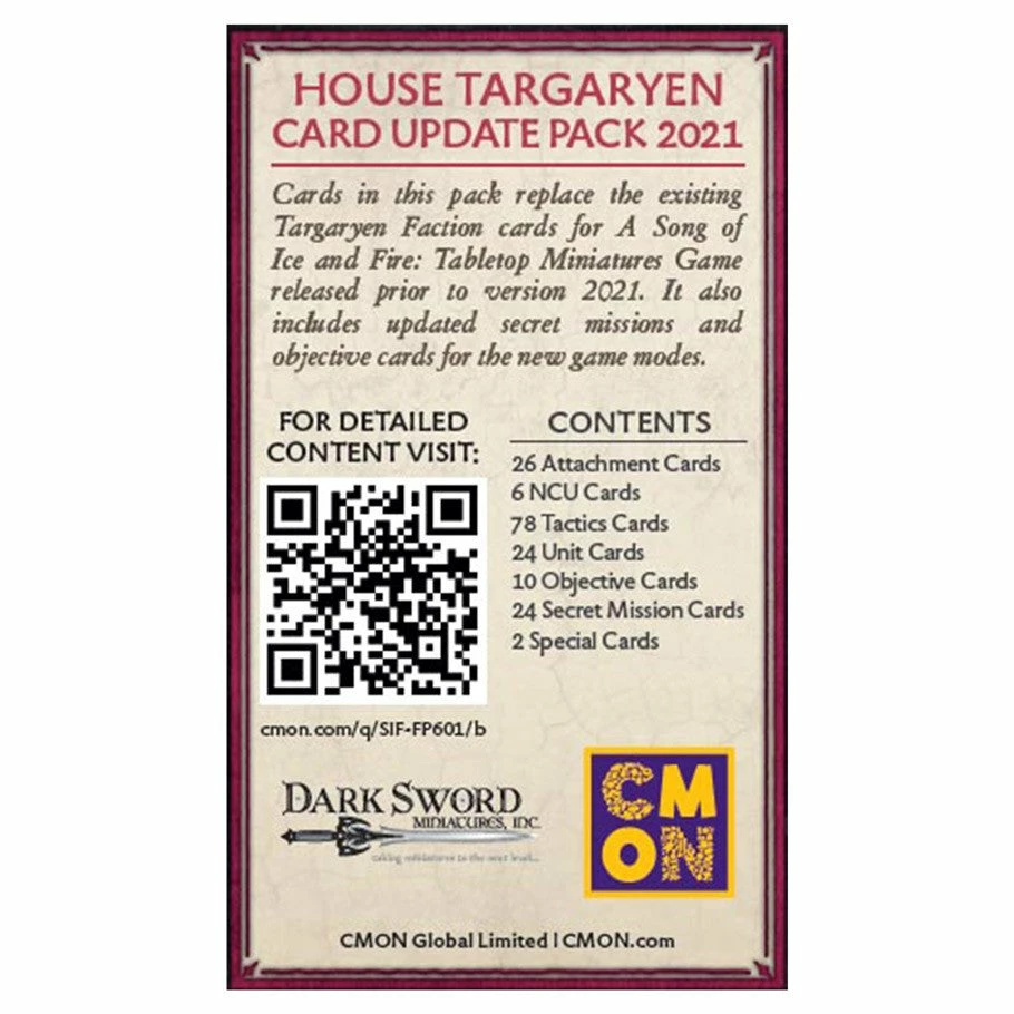 This faction pack is for the House Targaryen Faction and would appeal to fans of A Song of Ice and Fire: Tabletop Miniatures Game who use a Targaryen Army.