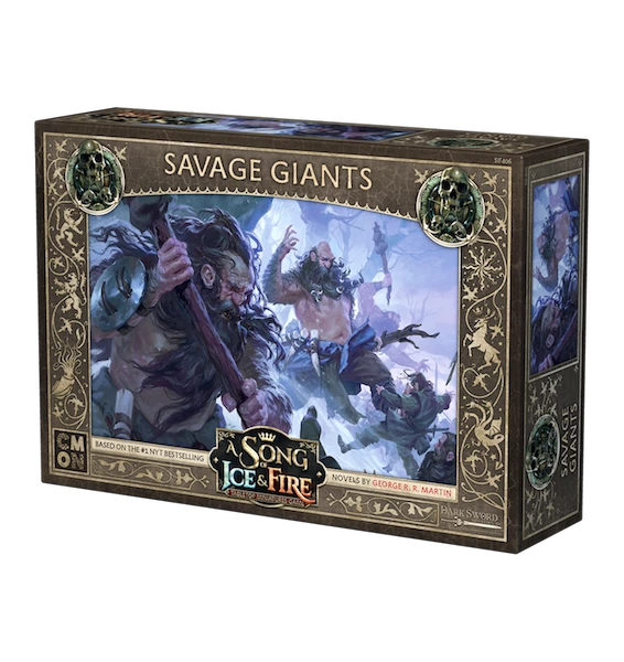 The Savage Giant unit box for the A Song of Ice and Fire: Tabletop Miniatures Game gives Free Folk Commanders two huge figures to add to their forces. The Savage Giant is both resilient and deadly. Their Mighty Swing doesn’t allow for Defensive Saves, as it can bash through multiple troops with a single swing. The Giant is resilient, too, having five Wounds and only taking a wound for each two Hits it takes. Hurting the Giant just makes it mad, with its Mighty Swing doing more and more damage for each Wound the Giant has.