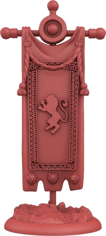 During battle, communication between a commander and their troops is extremely important. Many great battles have been won and lost because one side was able to moreeffectively utilize its resources because of superior communication. Banners have been used for centuries as a communication technique. When the Iron Throne is on the line, every detail matters. The Lannister Deluxe Activation Banner set gives commanders an easy way to keep track of which of their units have activated and which are left to go. The set contains 10 premium plastic banners, each attached to a 30mm base. The banners can be placed next to a unit to show that it has activated, or on its unit Stat Card. When the unit starts taking casualties, the banner easily fits into a space on the unit’s movement tray.