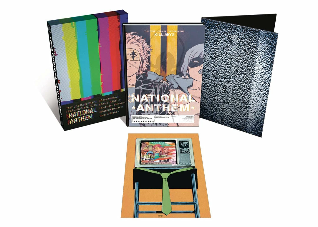 o The oversized deluxe hardcover collects issues #1-#6 of National Anthem-the deluxe format also includes a slipcase designed by Tony Ong, an exclusive print by Leonardo Romero and Jordie Bellaire, as well as a brand new eight-page Killjoys story exclusive to the hardcovers.