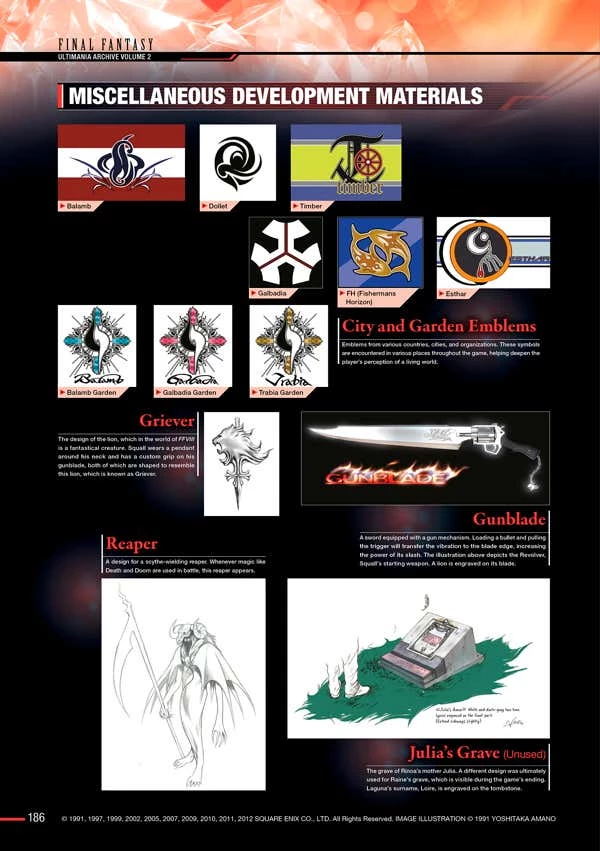 * Collecting the art and notes from the creation of Final Fantasy games seven through nine.