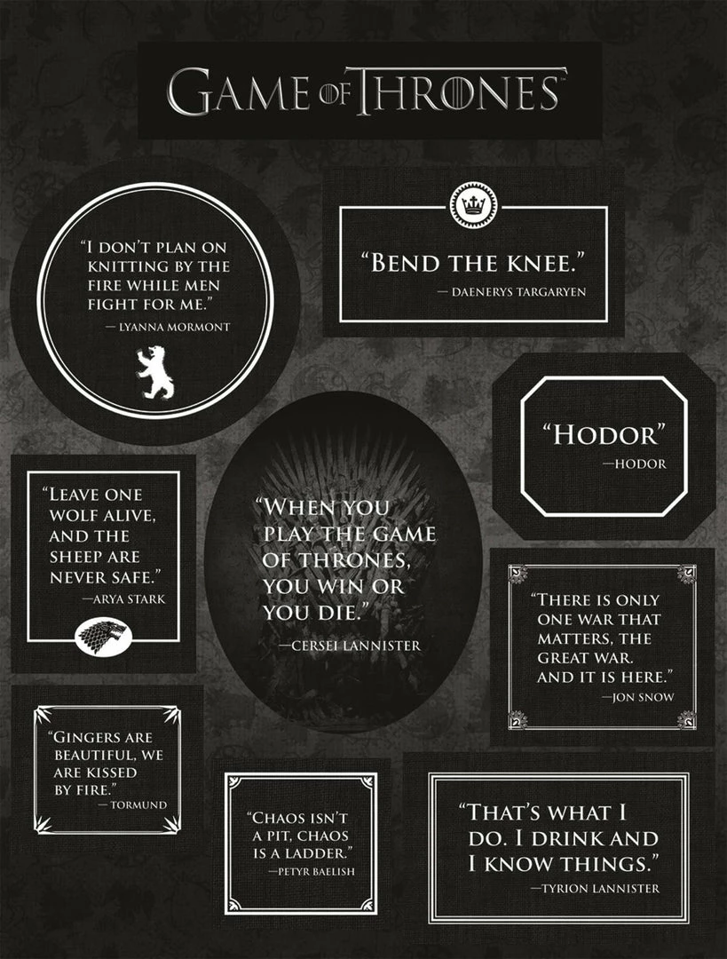 Commemorate legendary moments from HBO’s Game of Thrones with these magnets featuring quotes from Jon Snow, Arya Stark, fan favorite Lyanna Mormont , and more! A perfect addition to any collector’s kitchen or great hall.