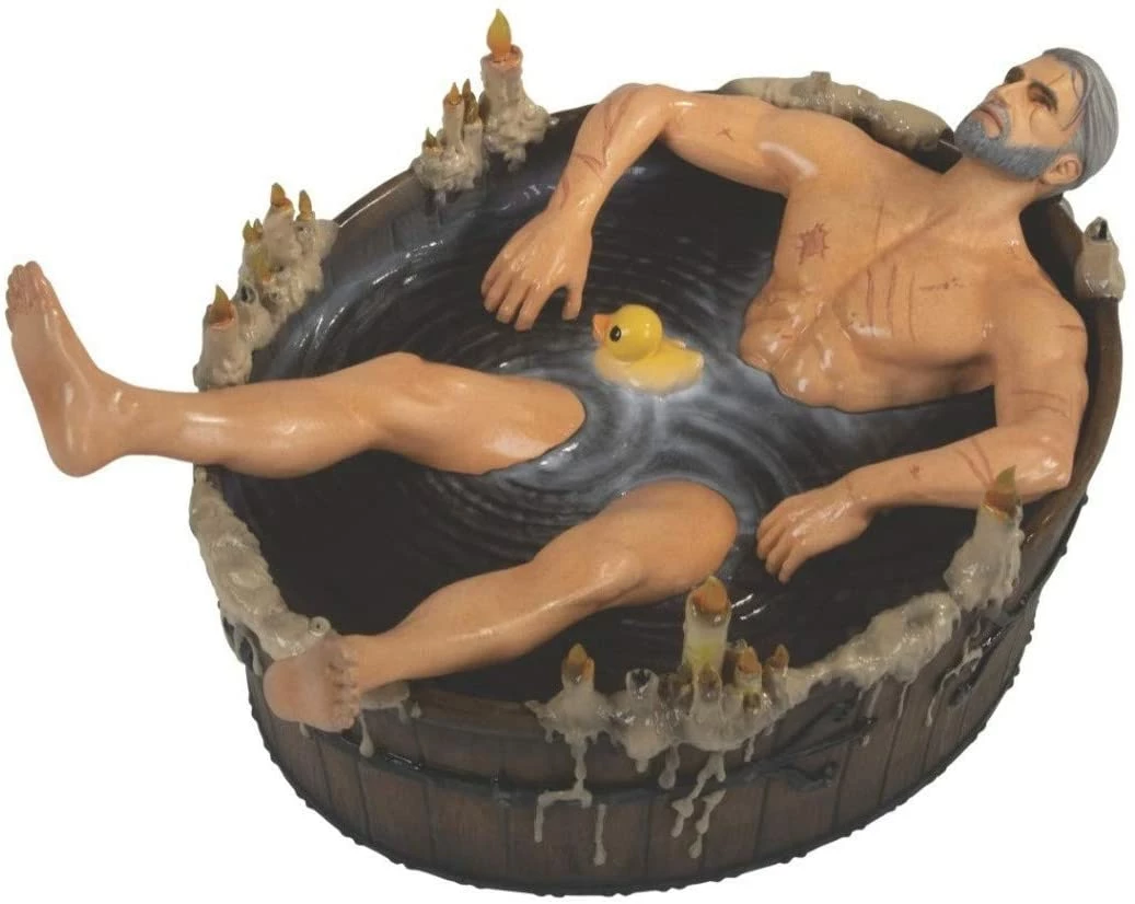 Dark Horse is proud to bring you this marvelously detailed, hand-painted polyresin statuette featuring Geralt of Rivia relaxing and healing from his perilous journeys, in a candlelit bath, complete with his rubber ducky!