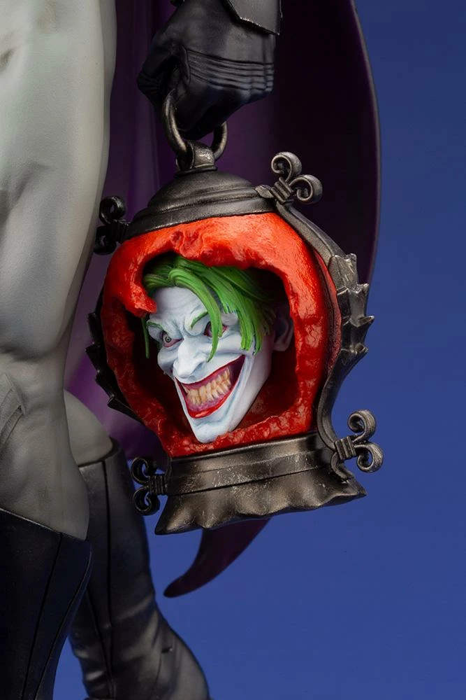 The Dark Knight is depicted as he traverses the earth with the head of his nemesis The Joker sealed in a container. Standing 30 cm tall, this detailed piece captures the stylization and form of the unique pencil work in the comics.