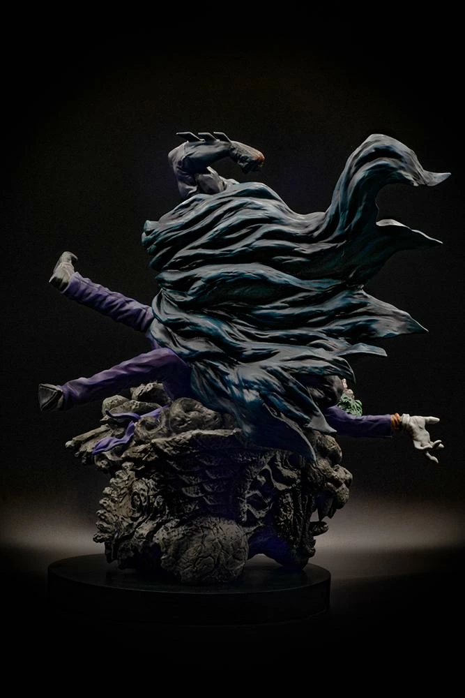 Justice and chaos clash swords in this amazing first release by Koto Inc. and Zerostar Studios. Angered by the Joker’s crimes, the caped crusader pursues him in his unrelenting fury. Here, he grasps his nemesis by the throat, his fist raised