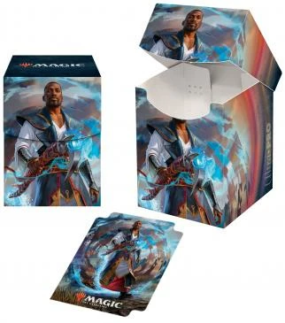 Store and protect your favorite deck with this Magic: The Gathering PRO-100+ Deck Box, sized to fit 100 standard size (2.5″ x 3.5″) gaming cards double sleeved in Ultra PRO Deck Protector sleeves. With full color printing and limited production, this Deck Box is a great addition to any MTG collection. This box is light, easy-to-carry and made with archival-safe, rigid polypropylene material. The self-locking lid design with write-on strip makes it easy to secure and identify your deck, while thumb notch sections provide easy access to cards. Each box comes with one (1) deck divider with full color artwork.