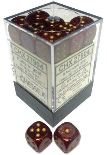 36 pcs dice set by Chessex. The dices contain 12mm six-sided dice (12mm is significantly smaller than the standard 16mm dice).