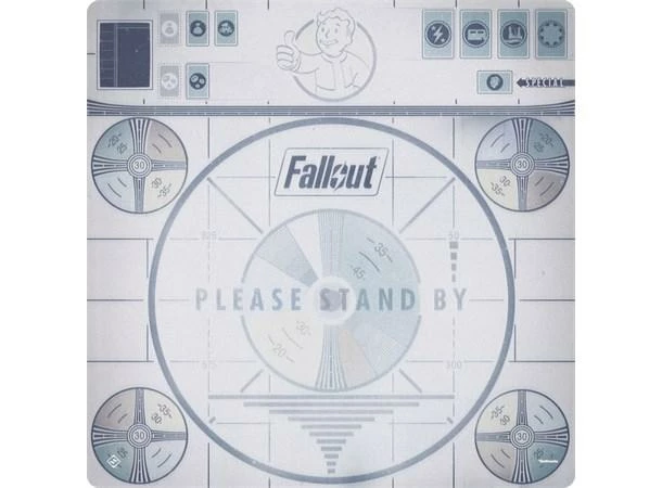 The Please Stand By Gamemat gives you the perfect canvas to create your own Wasteland, with plenty of space for you to set up your map tiles for a standard scenario or to expand into the new territory provided in the New California expansion. No matter what situation you find yourself in, the playmat draws you even deeper into the world of Fallout with the iconic “Please Stand By” imagery of the critically acclaimed video game series.