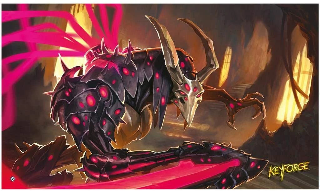 Field your spectacular clashes in style with the Into the Underworld Playmat for KeyForge: Call of the Archons! Whether you are participating in a high-caliber tournament or simply playing around the kitchen table, this high-quality playmat presents your cards in stunning fashion, featuring rich art from the expansive and enigmatic world of KeyForge. This 24” x 14” mat provides the perfect play surface to protect your cards from stains and spills, keeping the focus on your adventures in the Crucible. Displaying a wicked art piece to embrace your Dis pride, this mat keeps your chaotic clashes both organized and immersive.