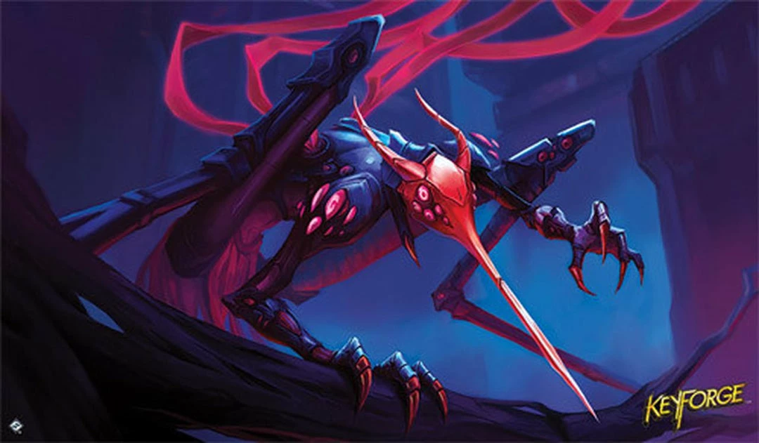 Field your cosmic clashes on the Crucible in style with the Malison Playmat for KeyForge: Worlds Collide! Whether you are playing in a high-caliber tournament or around the kitchen table, this high-quality rubber-based playmat presents your cards in stunning fashion with vibrant art from the world’s first Unique Deck Game. This 24” x 14” mat provides the perfect play surface to protect your cards from stains and spills, keeping the focus on your adventures in the Crucible. Displaying a vibrant art piece that embraces the dark, mysterious side of Dis to help you embrace your House pride, this mat keeps your battles both organized and immersive.