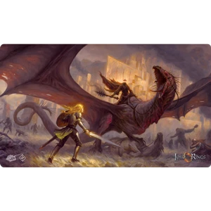 Embark on your adventures in Middle-earth in style with five new playmats for The Lord of the Rings: The Card Game! Whether you are participating in a thrilling Fellowship Event, or just playing around the kitchen table, these high-quality playmats present your cards in a cinematic fashion, featuring iconic art from The Lord of the Rings: The Card Game, while providing a play surface perfect for protecting your cards from stains or spills. With The Flame of the West Playmat, you can inspire the Rohirrim alongside the Lady Eowyn as she stands against dread Witch King at the Field of Pelennor.