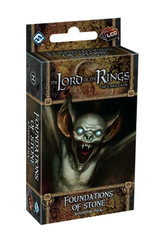 Foundations of Stone is the fifth Adventure Pack in the Dwarrowdelf cycle for The Lord of the Rings: The Card Game. Its 60 cards introduce a new hero, three copies of each player card, and an all-new scenario that traps your heroes in treacherous underground currents that wash them into a dark and dangerous realm where the nameless things lair!