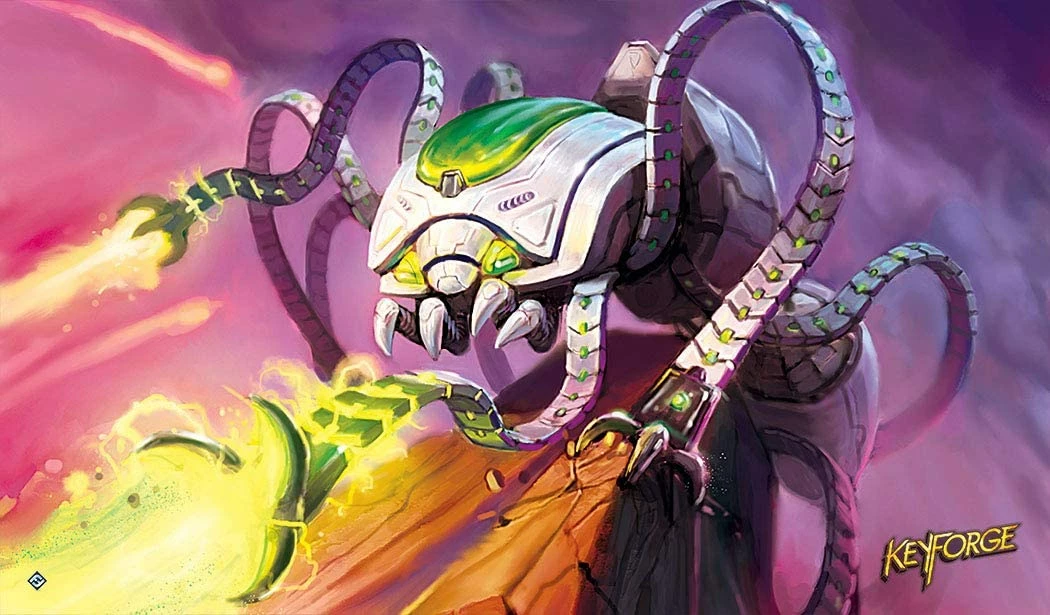 Field your cosmic clashes on the Crucible in style with the Storm Crawler Playmat for KeyForge: Age of Ascension! Whether you are playing in a high-caliber tournament or around the kitchen table, this high-quality rubber-based playmat presents your cards in stunning fashion with vibrant art from the world’s first Unique Deck Game. This 24” x 14” mat provides the perfect play surface to protect your cards from stains and spills, keeping the focus on your adventures in the Crucible. Displaying a gripping art piece to display your Mars pride, this mat keeps your battles organized and immersive.
