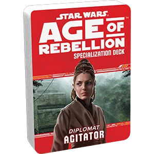 The Empire’s main weapon, more effective than all of the incredible firepower at its disposal, is fear. Fear lets it maintain order and authority over the countless beings in its thrall. Accordingly, Agitators are tasked with helping others overcome that fear, replacing it with anger, courage, or a sense of righteousness – anything that inspires them to rise up, take up arms, reject the tyrannical government that has long oppressed them, and help restore freedom and justice to the galaxy. As an Agitator, your job requires that you tread carefully, and you’ll do well to keep track of all your resources with the Diplomat Agitator Specialization Deck.