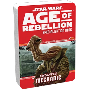 Mechanics are the gears of the Alliance machine and the grease that makes it run smoothly. Military vehicles, starfighters, artillery, and other machines suffer constant wear-and-tear, and the Rebellion relies upon its Mechanics to keep them functional for battle. Thus, while explosions erupt all around you and laser blasts ionize the air, the Engineer Mechanic Specialization Deck can be almost as valuable as your tool kit because it helps you focus on the task at hand to complete it as quickly and skillfully as possible.