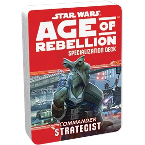 Plan the next moves of the Rebel army with the Strategist Specialization Deck for the Star Wars®: Age of Rebellion™ roleplaying game. Available through our in-house manufacturing division, each Age of Rebellion Specialization Deck includes twenty talent cards for a single specialization. Thematic art on every card helps immerse you more fully in the Star Wars universe. With these cards GMs can easily reference the talents in play and players can focus on processing information and making the strategic decisions that will win the day.