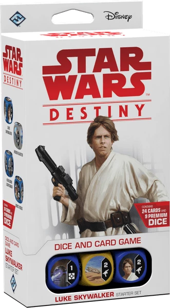 Discover the legacy of two of the galaxies greatest heroes with the Luke Skywalker Starter Set for Star Wars™: Destiny! The set lets you take control of Luke Skywalker and Han Solo in their battle against the Empire. With twenty-four cards and nine dice, the Luke Skywalker Starter Set contains everything you need to start your journey into Star Wars: Destiny.