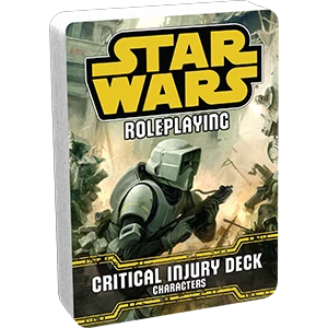 Whether you’re a smuggler in the Outer Rim, a soldier of the Rebel Alliance, or a Force-sensitive outcast hiding from the Empire, chances are you’ll eventually injure an adversary or get injured as you fight for profit, honor, or survival. The Critical Injury Deck makes managing and healing critical injuries easier by putting the rules for all critical injuries right at your fingertips. Compatible with the Star Wars: Edge of the Empire™, Age of Rebellion™, and Force and Destiny™ roleplaying games, the Critical Injury Deck contains twenty-nine cards, each detailing the effects and severity of a single injury. Full-color art on every card suggests the nature of each injury and immerses players more fully in the Star Wars universe.