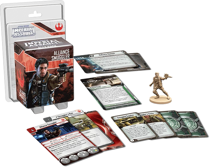 The Rebellion may prefer not to deal with criminals, but the Rebels still need the services of dedicated smugglers. You gain a single Alliance Smuggler in the Alliance Smugger Ally Pack for Imperial Assault, alongside new missions and cards to enhance both campaigns and skirmishes. You can smuggle supplies past your opponents in a skirmish game to claim additional victory points or race to recover the cargo of a tramp freighter in a new campaign side mission. With the ability to slip past your opponents and hold his own in a fight, the Alliance Smuggler is a worthy addition to any strike team.