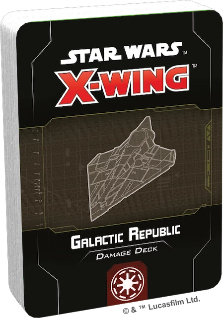 Personalize your Star Wars: X-Wing experience and display your loyalty with the Galactic Republic Damage Deck! This deck contains a complete set of thirty-three illustrated damage cards featuring diagnostics of a Delta-7 Aethersprite so you know exactly where your ship is hit.