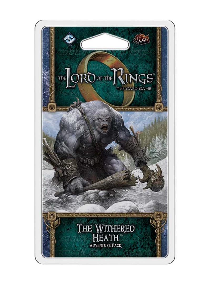 The Withered Heath is the first Adventure Pack in the Ered Mithrin cycle for The Lord of the Rings: The Card Game. After journeying up the Anduin River on the eve of winter, braving the Forest Road through Mirkwood, and plumbing the depths of the caves that lie below the Iron Hills, word of a new threat waiting high in the Grey Mountains has reached your group of heroes. This dire pronouncement has sent them in search of the Withered Heath, a long valley where Dragons are said to breed.