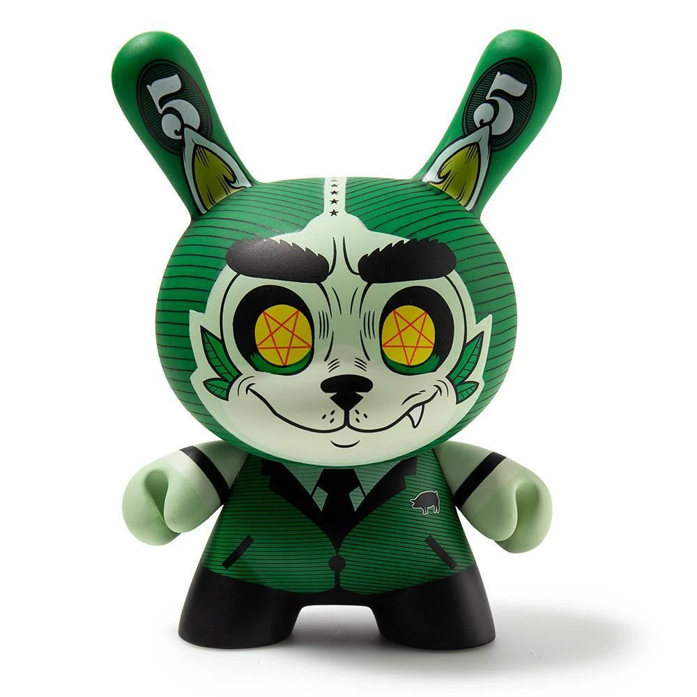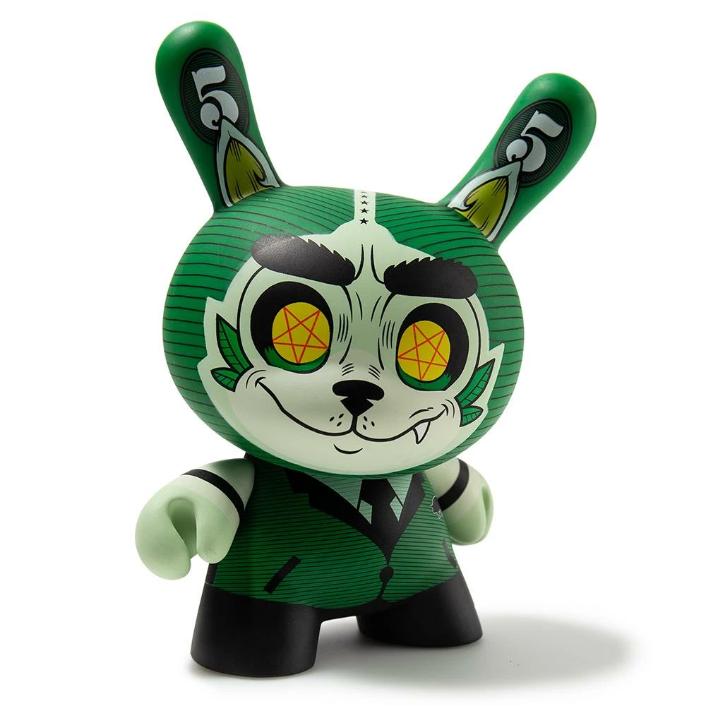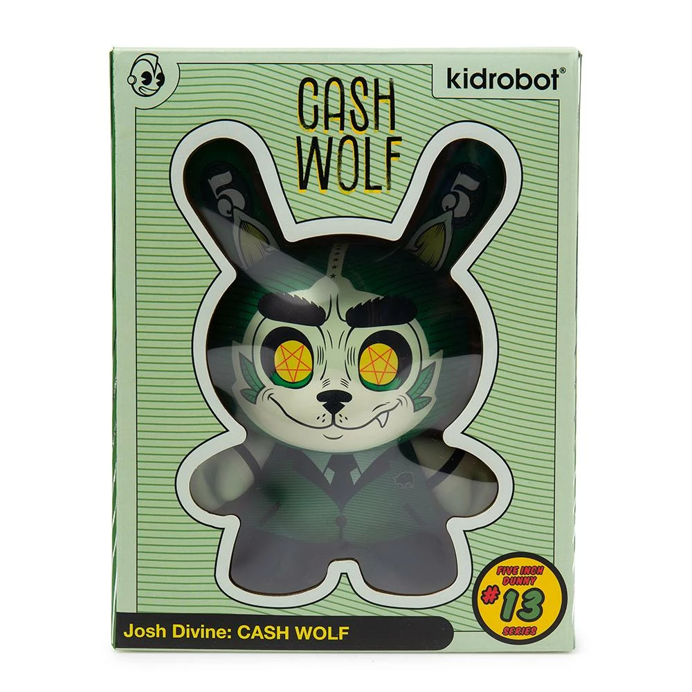 Life, Liberty, and the pursuit of a good paycheck! Scratching at the difference between what’s real and what’s counterfeit, this fat cat begs the question – What’s it all worth? Suited up and pockets lined, Cash Wolf is here to raise your stock and inflate your Dunny game. Get a closer look at his striped suit and clean teeth, but don’t be fooled, everything that glitters isn’t gold. Cashing in at 5 inches tall of high quality vinyl and with priceless style, the Cash Wolf by Kidrobot designer, Josh Divine, is worth every pretty penny.