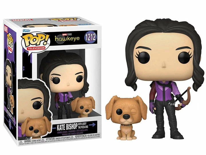 From Funko. From the hit Disney+ series Hawkeye starring Jeremy Renner and Hailee Steinfeld comes these new additions to Funko’s POP! figure line: Kate Bishop, a young archer, and her one-eyed dog Lucky feature Funko’s beloved style. The Kate Bishop figure stands 3 3/4″ tall and the Lucky figure is in scale. Also available is a Maria Lopez figure that stands 3 3/4″ tall. Window box packaging.