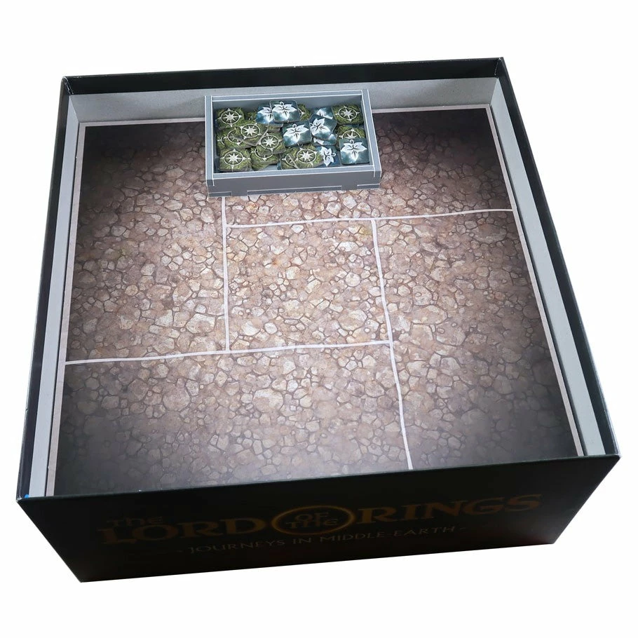 Insert compatible with Journeys in Middle-Earth®, and the Shadowed Paths®, Villains of Eriador®, and Dwellers in Darkness® Expansions. The design provides both efficient storage and improved game play. Many of the trays can be utilised during the game, and they greatly aid set-up and clear-away times.