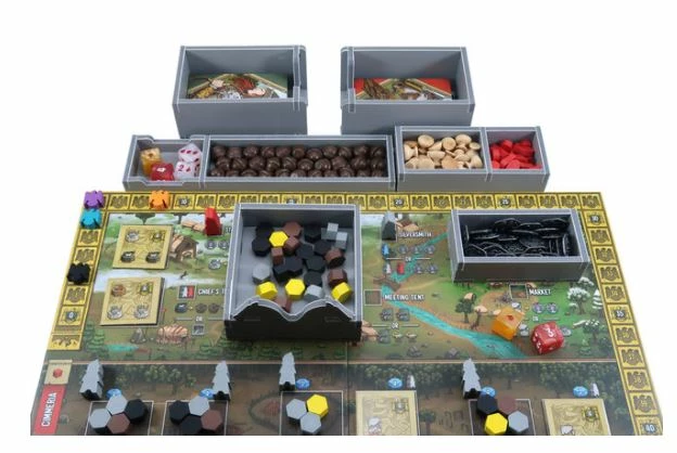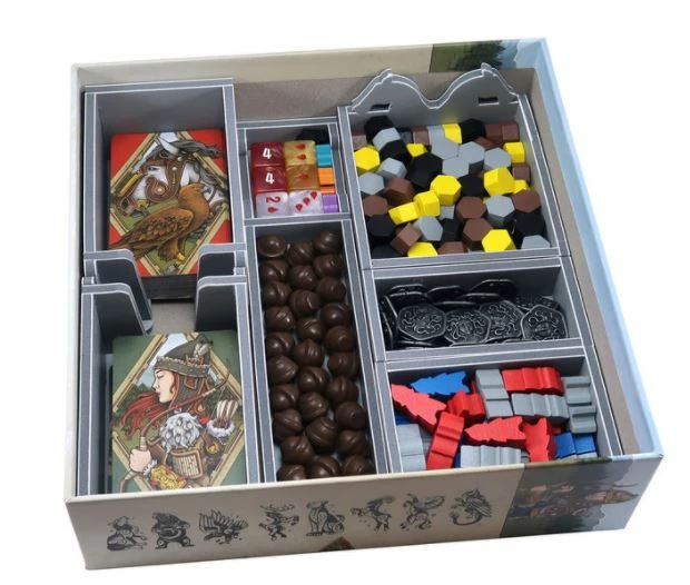 Insert compatible with Raiders of Scythia. The design provides both efficient storage and improved game play. Many of the trays can be utilised during the game, and they greatly aid set-up and clear-away times.