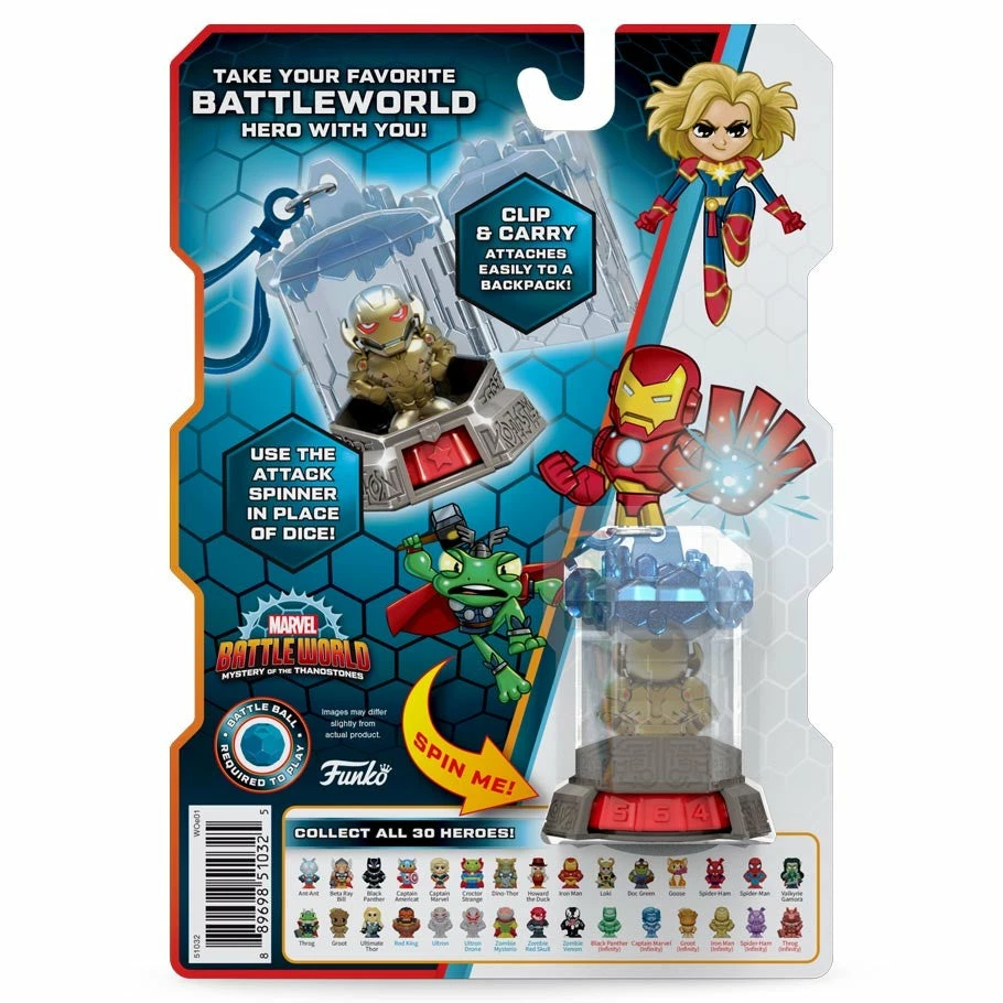 Pick your favorite Hero, rescue your friends, and win battles to defeat Thanos! Use this Marvel Battleworld accessory to carry your favorite Hero anywhere, just clip the Travel Portal to your bag. Plus you can use the easy-swipe spinner instead of an Attack Dice during gameplay – great for playing while traveling! Comes with an exclusive Gold Ultron Hero that is only available with the Travel Portal!