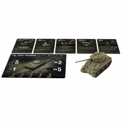 Inside you will find a highly detailed, assembled, painted plastic M4A1 Sherman (76mm) miniature and tank card. Your tank can be further personalised to match your requirements using the five crew, module and upgrade cards included.
