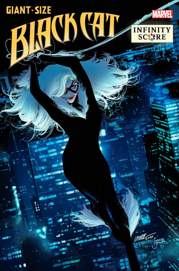 • This is it, the grand climax to INFINITE DESTINIES and INFINITY SCORE and the totality of BLACK CAT from the past two years, all in this oversize special! • Black Cat has brought half of the Infinity Stones together, collecting a level of power that hasn’t been seen in years! But to what end? • This hasn’t taken her out of the crosshairs of Nick Fury OR Nighthawk and with the Infinity Stones involved, can Thanos be far behind?! RATED T+