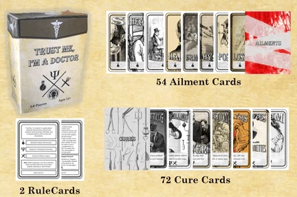 Trust Me, I‘m a Doctor is a Party Game of Dueling Doctors and Medical Malpractice, Full of Fun Debates and Gruesome Historical Facts for the Delight and Despair of all who play!