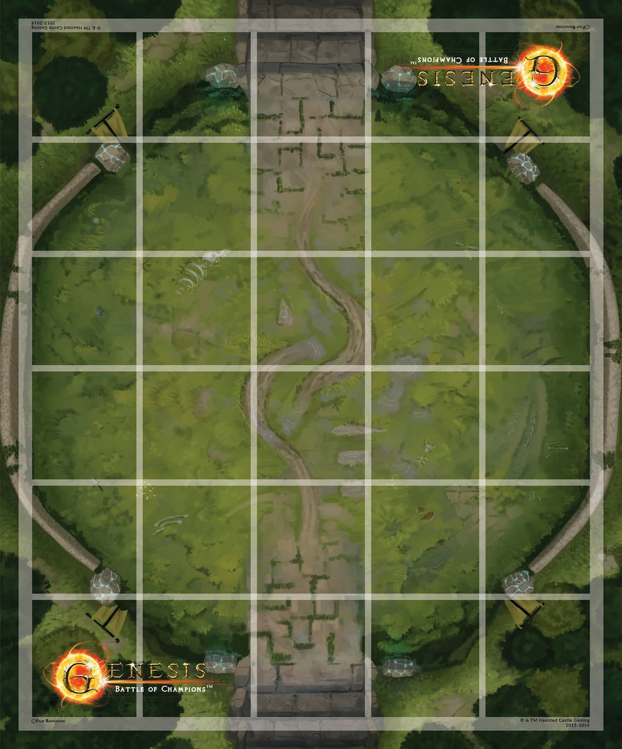 These premium neoprene mats have stitched edges which will help them last longer and the edges are less likely to fray. Like our previous mats, these are machine washable and are perfect for two to four-player games of Genesis: Battle of Champions. This mat artwork represents the city of Vadhis. The dimensions are 23.5 x 28.5 x 0.5 inches.