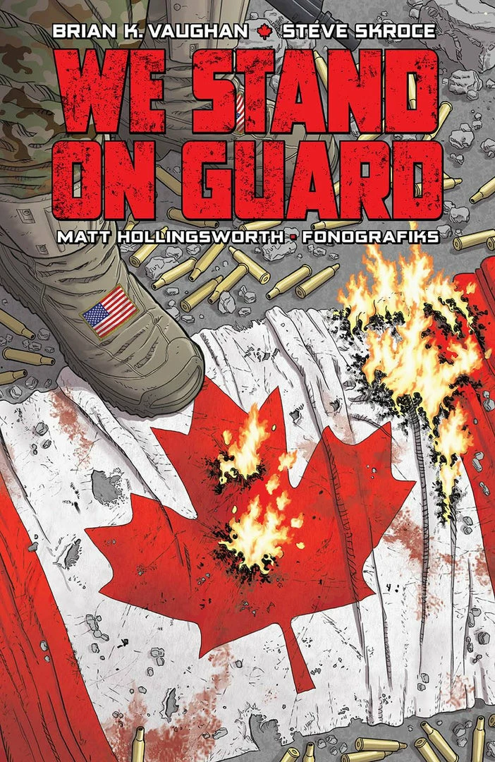 SAGA writer BRIAN K. VAUGHAN teams with Hollywood storyboard artist STEVE SKROCE for a subversive, action-packed military thriller. Set 100 years in our future, WE STAND ON GUARD follows a heroic band of Canadian civilians turned freedom fighters who must defend their homeland from invasion by a technologically superior opponent…the United States of America. Collects WE STAND ON GUARD #1-6 in trade paperback for the very first time!