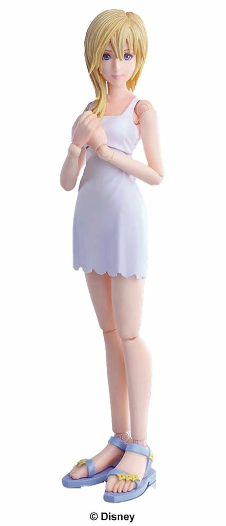 From Square Enix. Naminé, the mysterious girl from Kingdom Hearts III arrives as a BRING ARTS action figure! Her light gold hair, white dress, and fair-skinned complexion, as well as her innocent and ephemeral atmosphere has been depicted in this figure. Accessories include various expressive hand parts, such as those holding a pen or a sketchbook, and two head parts; it also comes with a chair on which Naminé can sit after exchanging a body part. This package enables a variety of expressions, enabling collectors to recreate a range of scenes from the game. Figure includes display stand.