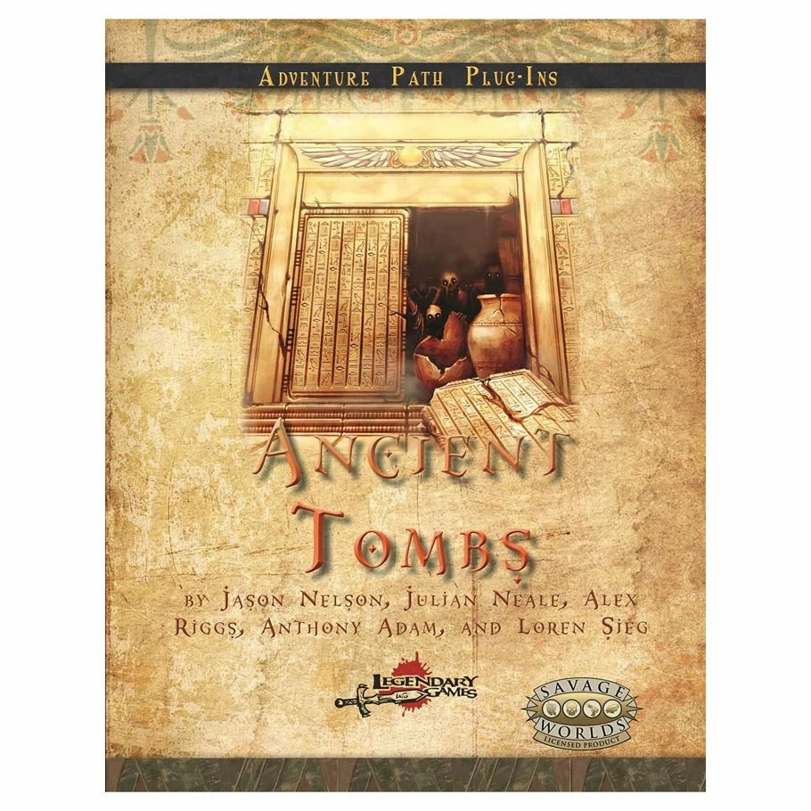 Among the Dead. Ancient Tombs provides a wealth of knowledge to enhance your Savage Worlds Adventure Edition campaign wherever your heroes are delving into the funereal grounds and burial chambers of the ancient dead. You’ll find within a detailed exploration of tombs of all types from both history and fantasy, with tables and detailed descriptions to create tomb treasures of every kind, from the ransacked graves of peasants to the pyramids of kings! Of course, tombs should not go unguarded, and you’ll find tomb hazards like the hungry sarcophagus haunt and pharaoh’s fall trap, alongside guardian creatures like the grave warden and mummified zombie templates and the versatile graven guardians You’ll also find two new Edges: Sleeper in Dust and Mechanical Genius.