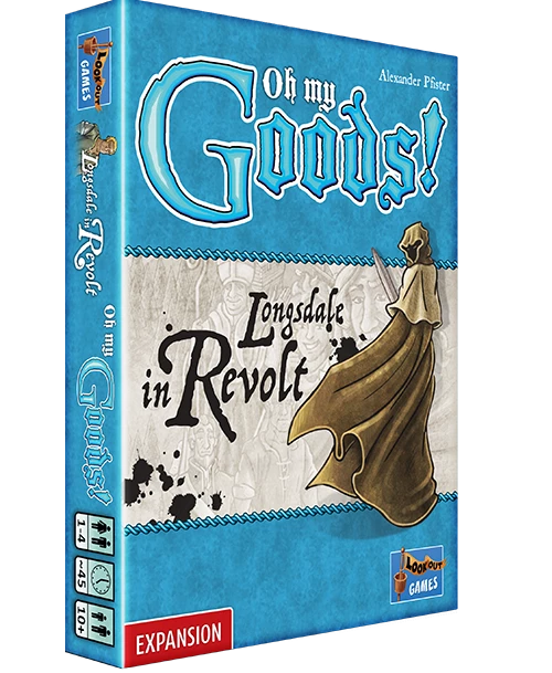 Riots are spreading in the capital Longsdale as well as rumors that there could soon be a war. The king needs your help, and your decisions might even be able to turn fate in a new direction… Oh My Goods!: Longsdale in Revolt is an expansion for Oh My Goods! Five chapters, new character cards, new building cards, 22 event cards, and 14 chapter cards are included. This product is an expansion: Oh My Goods! base game required to play.