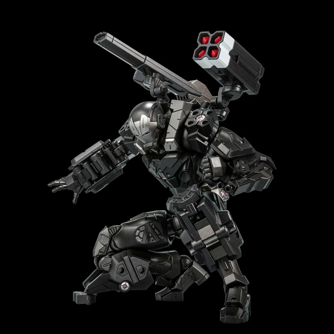 From Sentinel. War Machine” comes as the eighth item of “Fighting Armor” series! In this innovative series, the human body will be covered in a “suit” while each joint point is carefully designed in pursuit of articulation as close as possible to that of a true human body. Die-cast is used in various parts to reproduce sense of heaviness. In addition to the massive heavy armor on the legs, the arm and the back are equipped with machine gun and missile launcher respectively. An adjustable display stand is also included for aerial poses.