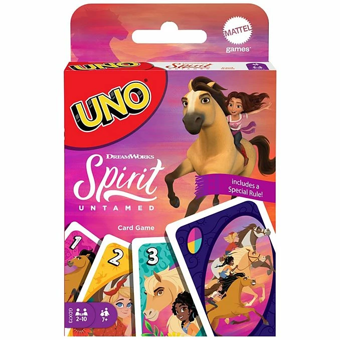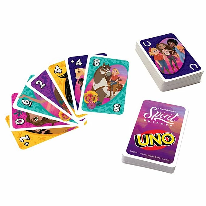 - This special edition of UNO®, everyone’s favorite card matching game, features images of the characters from Spirit Untamed, the animated film from Dreamworks studio.