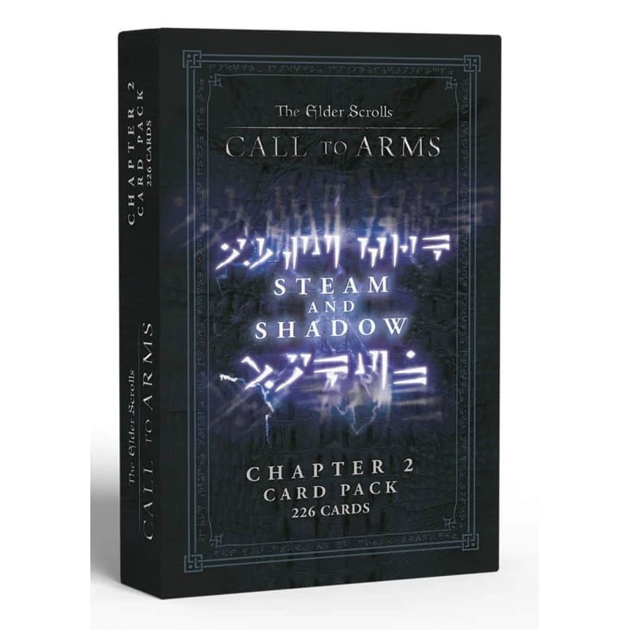 Steam and Shadow is the second Chapter Expansion for Elder Scrolls: A Call to Arms. It includes cards for Dwemer Animunculi and The Dark Brotherhood. Additional Battle Mode and Delve Quests, Traps and Events expand the narrative adventure game. Equip your heroes with new weapons, spells, armour and enchantments to overcome the dangers of Skyrim.