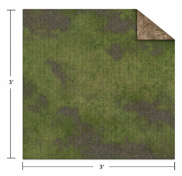 One side of the mat depicts a Broken Grassland – a green field broken up by patches of dirt and rocks.