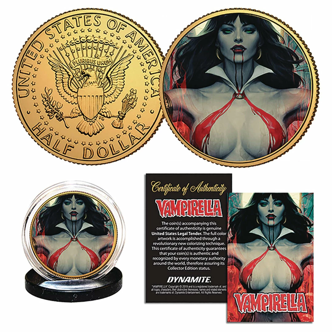 Featuring the art of the phenomenal Stanley “Artgerm” Lau! Produced using a revolutionary, highest-quality colorization technique on an authentic U.S. John F. Kennedy Half-Dollar, each plated in genuine 24-karat gold, these commemorative coins each come with a full-color Certificate of Authenticity and a protective acrylic coin capsule.