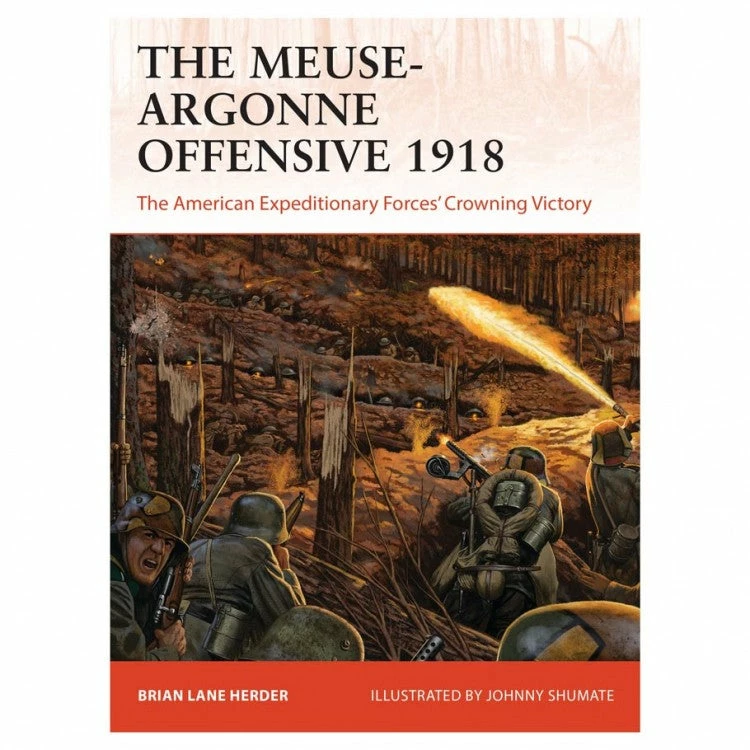The Meuse-Argonne was excellent defensive terrain, being hilly, steep, heavily wooded, and fortified by the Germans over a three-year period. The offensive began on September 26, 1918. A largely inexperienced US First Army, with mid-level officers including Harry S. Truman, Douglas MacArthur, and George Patton, suffered setbacks and heavy casualties during its straight-ahead offensive against a still-potent but fading German Fifth Army. However, by early November, 1.2 million Americans and several hundred thousand French were engaged at the Meuse-Argonne and the Hindenburg Line had been decisively broken. The German withdrawal from Sedan approached a rout and the Americans finally had the Germans on the run until the Armistice ended the offensive on November 11, 1918. This engaging title tells the full story of this key offensive, illustrating and explaining the troops, weapons, and tactics of both the American Expeditionary Force and the German Fifth Army in stunning detail.